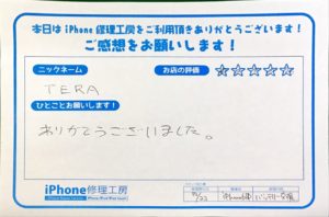 【iPhone6SPのバッテリー交換でお越しのTERA様からのお声】