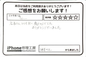 【iPhone6の液晶交換でお越しのティー様からのお声】