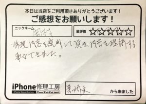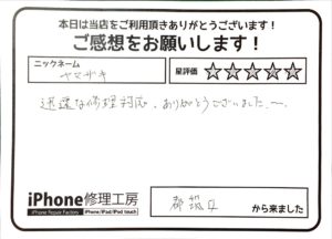 【iPhone7の液晶修理でお越しのヤマザキ様からの評価】