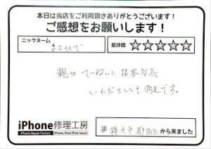 【スマホ修理工房港北TOKYU S.C.店】iPhoneのガラス割れ修理でお越しのお客様